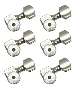 軸の長さ3種類(スタッガードポストセット)を取り付ける場合、ショートポスト2個、ミディアムポスト2個、ロングポスト2個を使用します。1弦から始めて、6弦へと徐々に取り付けていきましょう。