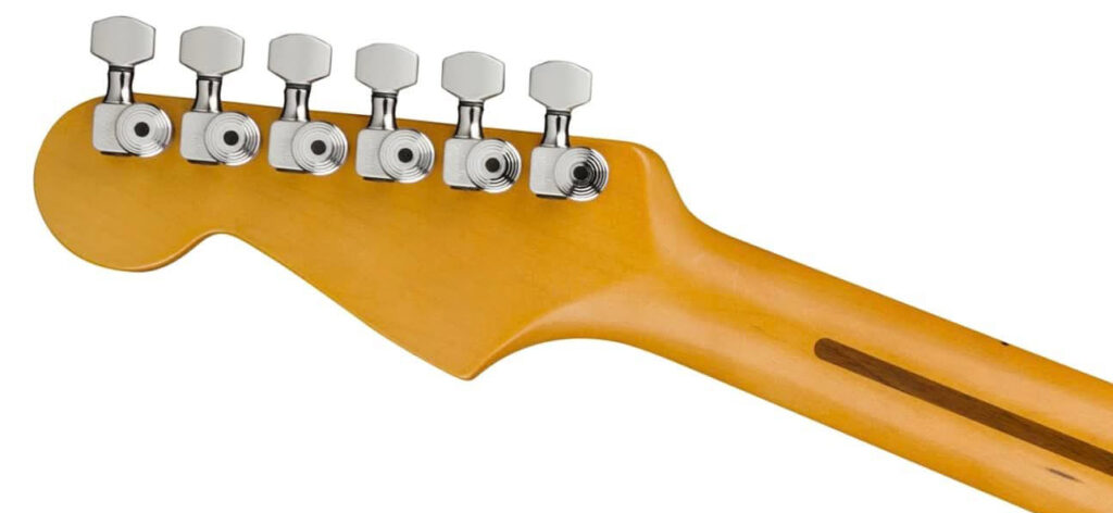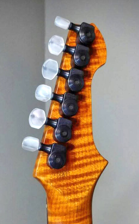 ● 1983年、Sperzelはギター界にロック式チューニングキー「Trim-Lok」を発表しました。このキーは、弦をしっかりと固定するため、弦ポストに巻き付けたり、何度も巻き付けたりする必要がありません。巻き付けたりすることで弦が滑ってチューニングの安定性に問題が生じることはありません。また、Trim-Lok 6L は弦ポストの高さを3段階に加工しているため、弦ツリーやロックナットなど、弦の振動を抑制し、チューニング中に摩擦を引き起こすような装置は一切不要です。