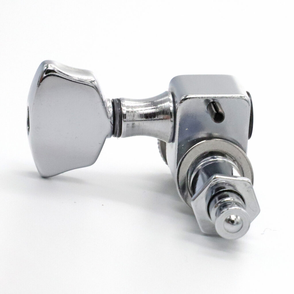 Trim-Lokは機械式のロックシステムです。ストリングポスト内のロックピンがストリングホールから外れるまで、ロックノブを回して緩めます。